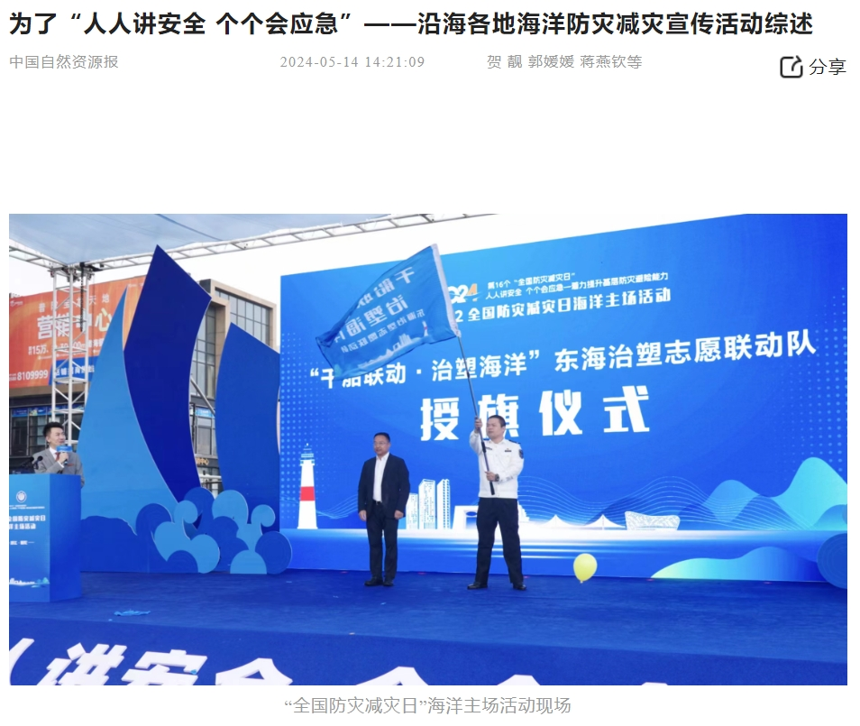 5月12日上午,由自然资源部东海局、国家海洋环境预报中心、国家海洋信息中心、自然资源部海洋减灾中心、浙江省自然资源厅和舟山市人民政府共同主办的全国海洋防灾减灾宣传主场活动在浙江普陀举行。