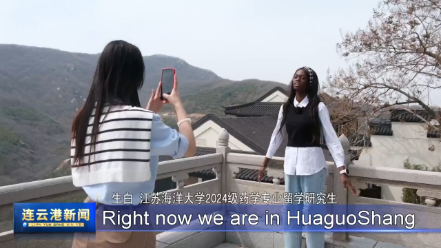 【现场声】生白 江苏海洋大学2024级药学专业留学研究生:Right now we are in HuaguoShang, and the name of the place is called Huajianling.