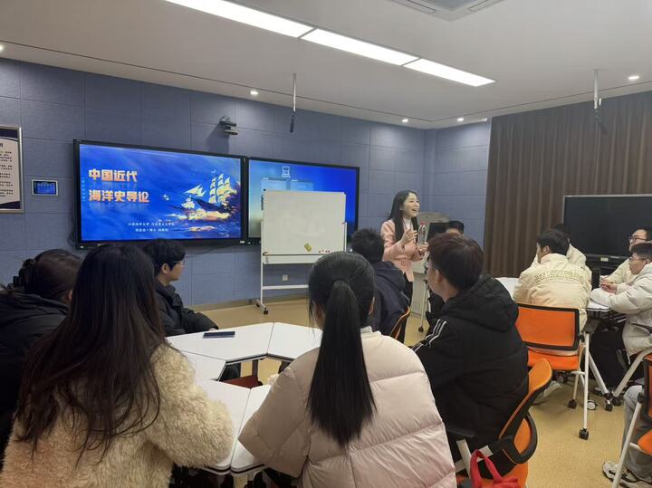 在江苏海洋大学,“海洋+”思政理念已贯穿人才培养全过程。12月4日下午,在该校海洋工程技术研究中心,专业老师张会霞正在为大二同学们上“结构力学”课程。她从学校自主研发的无人探测船曾在南海进行科考的经历说起,讲述“蛟龙”号、“奋斗者”号等更多“大国重器”的研发故事和关于这些船舶外壳在海水中的受力情况,并引导同学们思考人工智能如何赋能未来的海工装备。