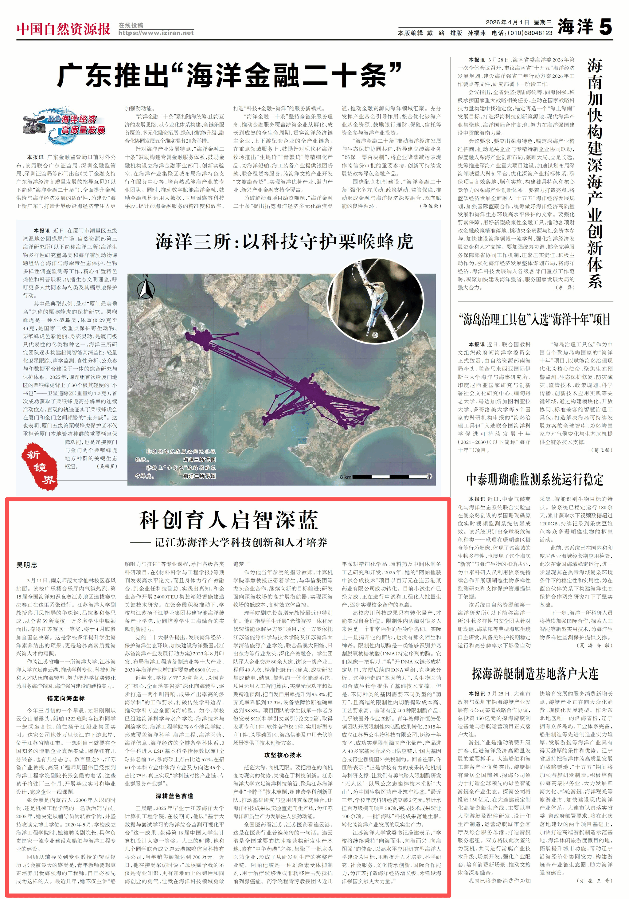 茫茫大海,商机无限。要把潜在的商机变为现实的优势,关键在于科技创新。江苏海洋大学立足海洋科技前沿,聚焦江苏海洋产业“卡脖子”技术难题,组建跨学科创新团队,推动基础研究与应用研究深度融合,让海洋科技成果从实验室走向生产线,为江苏海洋新质生产力发展注人强劲动能。