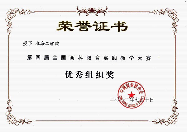 8月18-19日第四届全国商科教育学科竞赛会议暨教育实践教学竞赛颁奖仪式在北京举行。 经专家评审委员会审定,我校荣获第四届全国商科教育实践教学竞赛优秀组织奖。同时,化工学院王建、马卫兴、史继斌教授主持的教学成果分别获得课程建设实践教学方案、配套实践教学方案、多媒体教学课件等4个大类中的3个一等奖,商学院王洪海老师主持的教学成果获得课程建设实践教学方案一等奖;化工学院伏广龙、朱平华和孙霞老师主持的教学成果分别获得专业建设整体实践教学方案、多媒体教学课件3个二等奖。