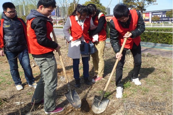 2013年3月10日,化学工程学院的志愿者们顶着26度的高温在苍梧桥边植树。 每年的3月12 日定为中国的植树节,我院志愿者开展了形式多样的护绿行动和植物种植实践体验活动,做到人人参与,宣传与实际行动相结合,从而令同学在活动中体验成功的喜悦,增加对植物生长的了解,增强环保意识,生态意识,以达到为班级、学校、社会增添绿色,净化、美化环境。“为了保护我国的林业资源,美化环境,保持生态平衡,我们发起: 种一棵小树,绿一方净土。的口号。”宣传组的郑雪君说到。