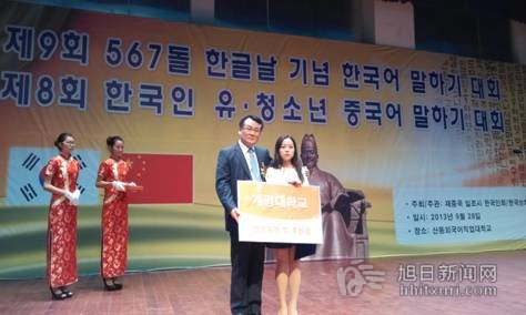 我校选派了两名朝鲜语专业学生参赛,其中,章琴潇同学荣获大赛一等奖,获得赴韩国启明大学一年免费留学的宝贵机会,单丽君同学也取得三等奖的优异成绩。