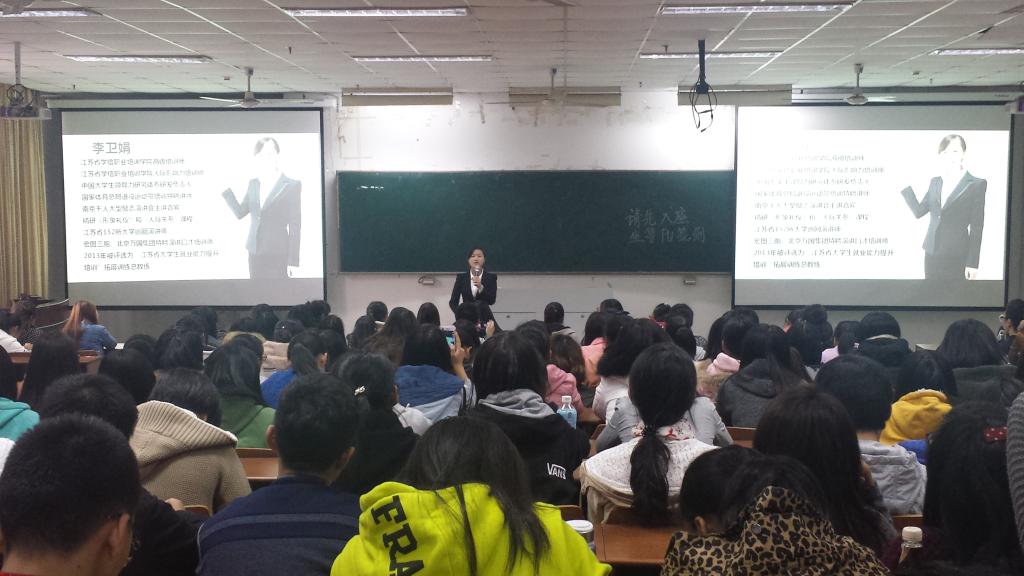 伴随着社会竞争压力的剧增,高校毕业生就业形势的日益严峻,为增强青年学生的综合素质和未来就业的竞争优势,11月5号下午,外国语学院在通灌校区阶梯教室举办了大学生能力培养与训练报告会。会议邀请江苏学信职业培训学院李卫娟老师,她以“赢在大学——大学生必备的五大能力”为题,围绕“培养能力,提高实力”与参会的同学和老师们畅谈了大学生能力培养对未来职业发展的的重要性。