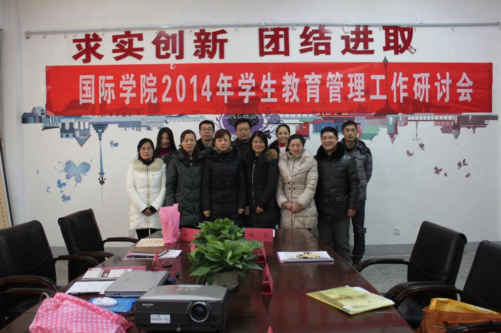 12月19日下午,国际学院在文渊楼285会议室召开了2014年学生教育管理工作研讨会。学院党政领导、系主任、辅导员、全体班主任和学生代表参加了研讨会。
