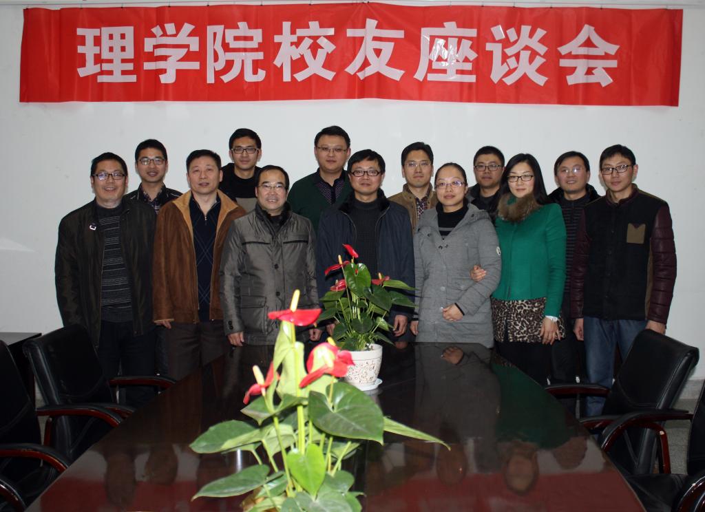 12月28日下午,理学院连云港地区校友座谈会在文渊楼340举行。学院党委书记王恒明、院长曹伟平、数学与应用数学系主任董晓波出席座谈会,98级、99级9名校友代表参加座谈会。会议由党委副书记张振松主持。