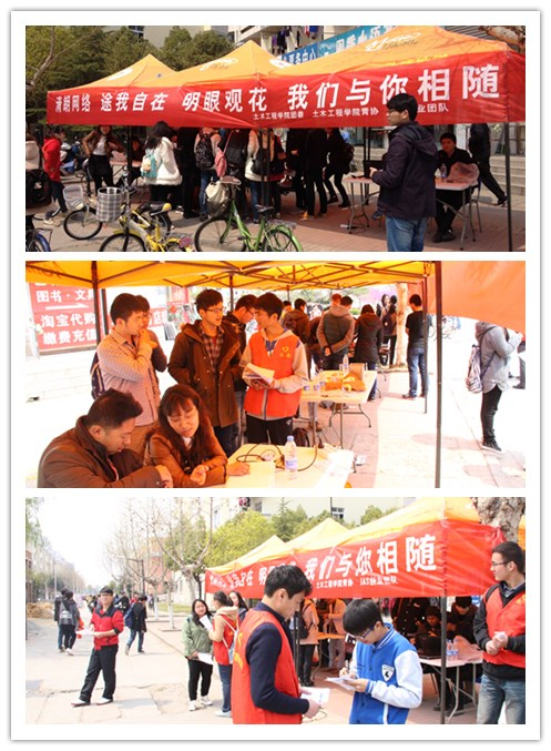 4月8日上午,土木工程学院在一食堂广场举行了以“清朗网络、途我自在、明眼观花”为主题的系列志愿服务活动。本次活动由土木工程学院团委主办,学院青协和IAS创业团队承办,义务帮助同学们诊断电脑故障、普及电脑小知识以及清洗眼镜、更换鼻托、宣传爱眼知识、修理自行车等。