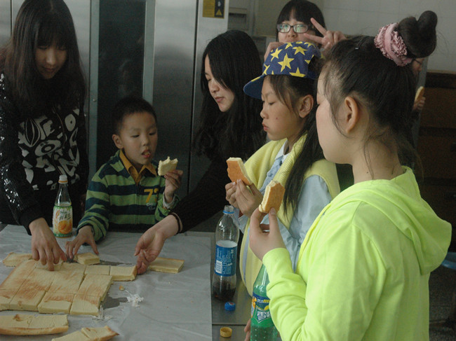 为了给向阳小学的小朋友们带去快乐和温暖,让孩子们了解面包制作和体验自己动手制作面包的乐趣,4月25日,海洋学院青协邀请向阳小学的五名小学生及其家长来参加面包制作大赛。