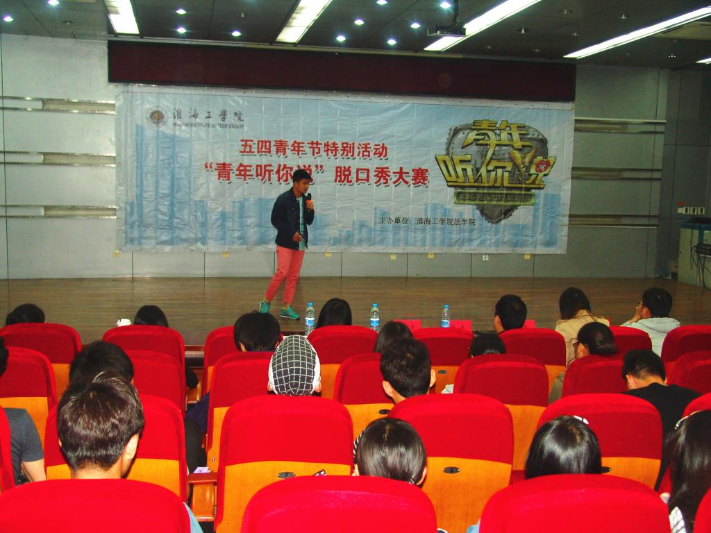 “今天正逢青年节,我们希望通过这样脱口秀的形式,让大家尽情地发表自己的心声,展现我们当代青年崭新的、多元化的精神面貌。”法学院学生会主席徐颖同学说道。