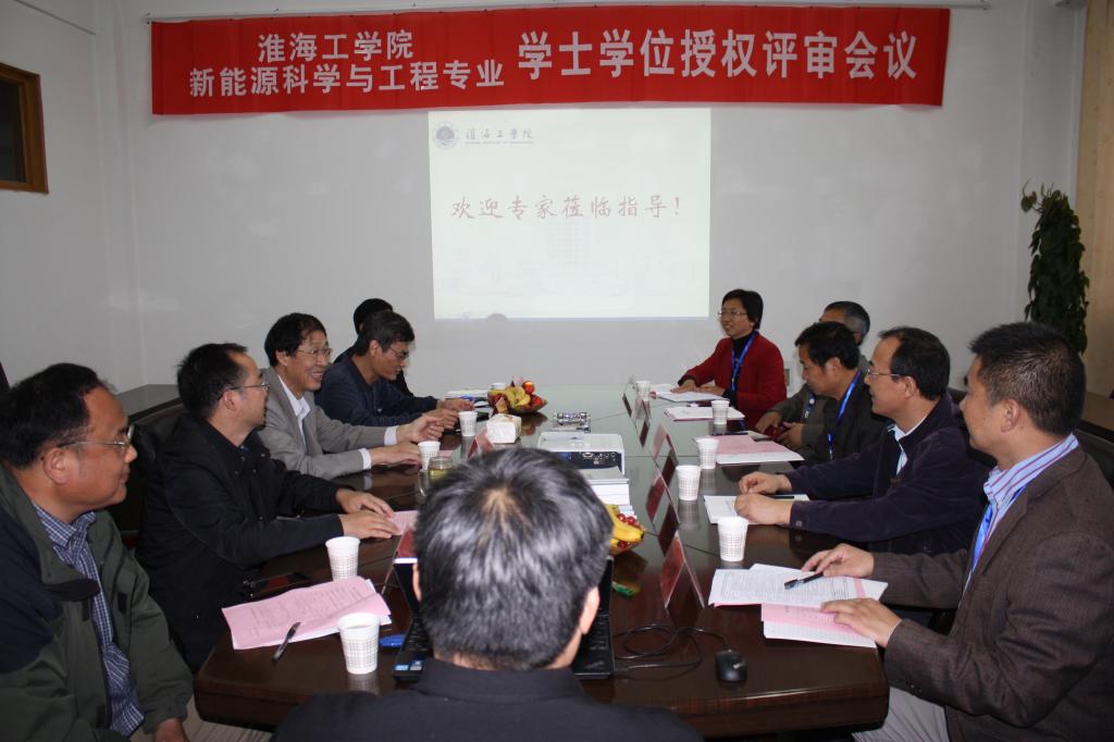 5月11日上午,我校2011年新增专业——新能源科学与工程专业学士学位授权专家实地评审会在理学院会议室隆重举行。由中国矿业大学电力工程学院院长、博士生导师李意民教授为组长,南京工业大学新能源系主任孙后环教授、盐城师范学院物电学院院长刘成林教授、淮阴工学院江苏省生物质转化重点实验室主任李相前教授、盐城工学院新能源系主任张兰红教授、日出东方太阳能股份有限公司副总裁焦青太总工程师、连云港市新能源行业协会副会长、秘书长陈双喜组成的学士学位授权评审专家组莅临我校副校长杜军、教务处处长、理学院院长李纪明、理学院党委书记王恒明等相关领导出席会议。