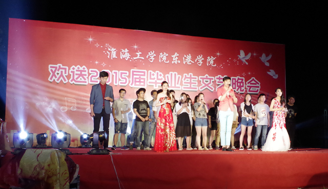 2015年6月1日晚,应用技术学院(东港学院)运动场上灯光闪烁,虽时不时地下起小雨,但却抵挡不了同学们参加“欢送2015届毕业生晚会”的热情。学院党委书记周清华、党委副书记万金店、副院长沈加君,各书院院长、团委老师、辅导员出席并观看晚会,和众多学子一起欢送毕业生。