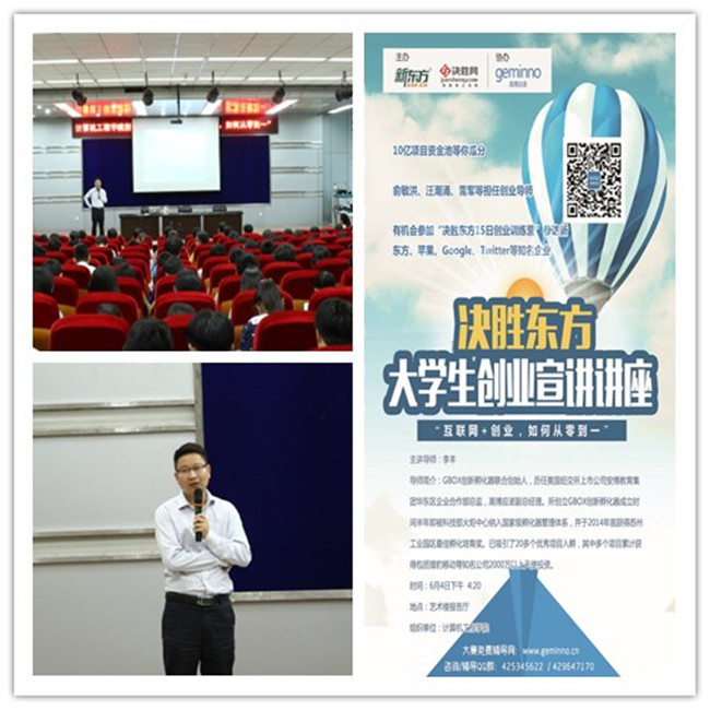 会上,他介绍了由新东方、决胜网主办,高博应诺协办的“决胜东方”大学生创业大赛的参赛方式、时间节点、奖项设置等内容,鼓励同学们积极参与其中,通过参赛累积经验、为自己创业赢得资金和技术支持。会后,一些同学围住李老师,针对自己感兴趣的问题与他进行了交流和沟通。
