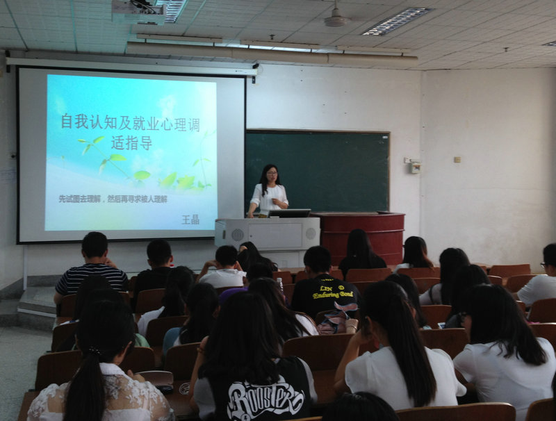 2015年6月9日下午4时30分,由测绘学院党委副书记、淮海工学院心理咨询师、职业指导师王晶老师开设的“自我认知及就业心理调适指导”讲座于主楼202准时举行。商学院2012级学生到场参加了此次讲座。