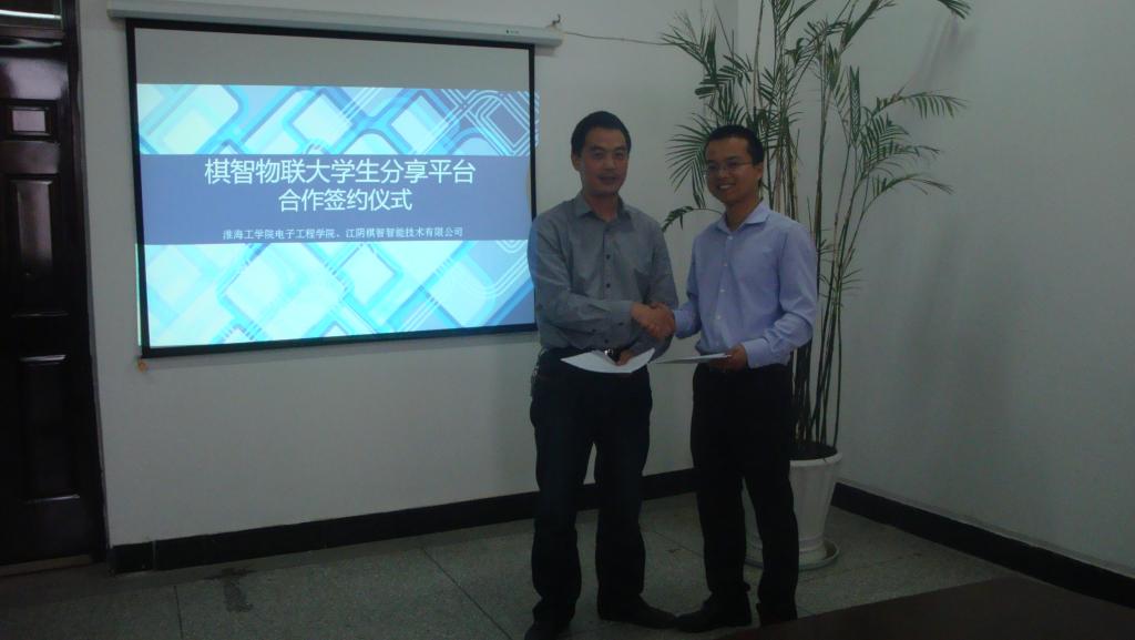 江阴棋智智能技术有限公司是一家专注于物联网技术研发和推广的高新技术企业。公司旗下“棋智俱乐部”专注于高校物联网教育和服务,旨在为高校学生提供一种知识、技术、技能、工作资源、创业资源的分享平台。此次签约仪式结束后,棋智智能技术有限公司将按照协议要求向电子工程学院免费提供一定数量的开发设备、电子配件以及智慧农业应用套件、智能商业应用套件、移动互联终端、智能健康管理套件、智能超市应用套件、智能环境监控和能源管理套件等多套应用实践套件以供电子工程学院的老师和学生进行科学研究和开发。
