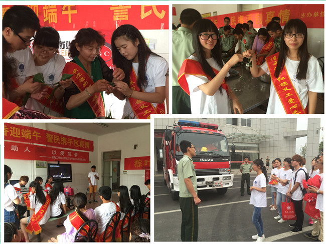 6月19日中午,计算机工程学院“以行助人 以爱筑梦”社会实践服务团的同学们在辅导员杜捷的带领下走进连云港市公安消防支队开发区大队,与连云港市红旗义工爱心之家、钢丝善行团江苏分会的志愿者们一道,慰问消防官兵,与官兵们一同包粽子、迎端午。