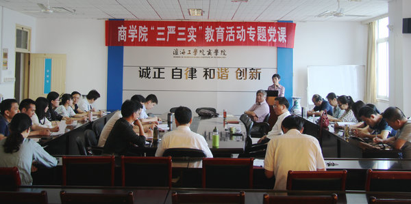 为贯彻落实全面从严治党要求,巩固和拓展党的群众路线教育实践活动成果,持续深入推进党的思想政治建设和作风建设,根据上级精神和学校党委工作布置,7月7日上午9:00,商学院在学院会议室厅举行了“三严三实”专题教育党课。商学院党委杨天华书记讲第一次专题党课,学院领导班子成员、各系主任、党支部书记、科以上干部以及教工、学生党员代表20多人参会。