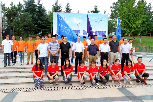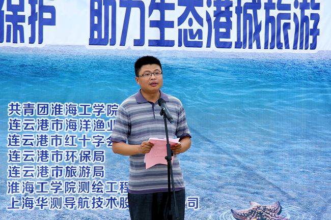7月9日下午,测绘工程学院“关注海洋环境保护,助力生态港城旅游”暑期社会实践项目启动仪式在连云港市苍梧绿园举行。副校长王洪法、校团委书记朱国军、测绘工程学院党委书记冯凤麟、连云港市红十字会副会长张六林、连云港市环保局副局长胡月武、连云港市旅游局副局长刘吉光、连云港市海洋渔业局海域管理中心副主任许祝华、上海华测技术股份有限公司南京分公司副经理莫绪春以及测绘工程学院全体辅导员、志愿者、近百位市民参与了本次启动仪式。仪式由测绘工程学院党委副书记、副院长王晶主持。