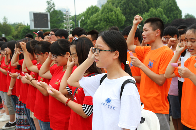校团委书记朱国军与连云港市红十字会副会长张六林在发言中分别用“不怕吃苦,克服困难”和“持之以恒”对志愿者们提出要求,希望志愿者们牢记志愿精神,传播社会正能量,为社会的进步贡献出自己的绵薄之力。在淮海工学院志愿者代表陈子飞同学昂扬的发言后,全体志愿者高举右拳、庄严宣誓“我志愿加入淮海工学院测绘工程学院‘三下乡’服务队。磨练意志,放飞理想。我承诺……”