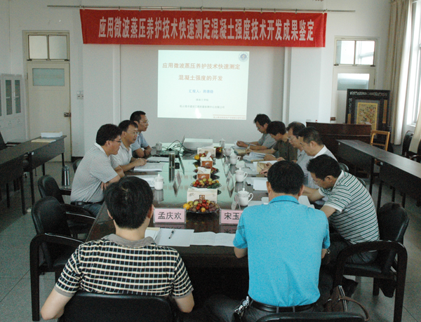 与会专家审查了相关技术成果资料,听取了项目组的汇报,并对项目进行了质询和讨论。与会专家认为项目“应用微波蒸压养护技术快速测定混凝土强度的开发”采用微波照射技术(微波功率5.4kW,微波照射时间7min,间隙1min照射,釜内温度150℃、压力0.48MPa,恒温恒压时间60min),制定了《微波蒸压养护条件下混凝土快速养护制度》、《应用微波蒸压养护技术现场快速检测混凝土强度操作指南》,实现在混凝土达到同样性能指标情况下,养护时间比传统技术缩短50%~70%以上,并推广应用到工程现场检测中,项目研究授权专利1项,受理中1项,发表科技论文3篇,项目经费专款专用,使用合理,验收资料齐整,完成了合同规定的各项指标,一致同意通过验收。