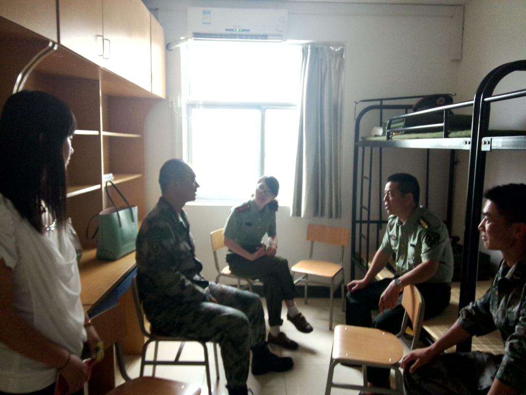 一进入宿舍,马书记立马亲切询问了教官们的食宿状况,并与大家坐在这虽小却又温暖的屋子里开始交流起来:拉家常、讲家乡、聊趣事……教官们也畅谈了军训感受,分享了军训时的心得,同时也赞扬了我院新生在军训中不怕苦不怕累的优秀品质,他们还对学校和学院领导的一贯关心和支持表示感谢,并表示会圆满完成军训任务。
