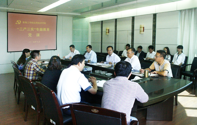 9月15日上午,应用技术学院在该院行政楼三楼会议室举办了“三严三实”专题教育第二次党课,该院院长樊华作题为“强化问题导向,以‘三严三实’作风促进转型发展”的报告。应用技术学院全体院领导、党支部书记、部门负责人,教工和学生党员代表参加会议。