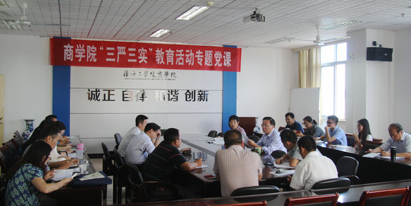 9月15日下午2:30,商学院在学院会议室举行了“三严三实”专题教育党课。商学院宣昌勇院长主讲第二次专题党课,学院领导班子成员、各系主任、党支部书记、科以上干部以及教工、学生党员代表20多人参会。