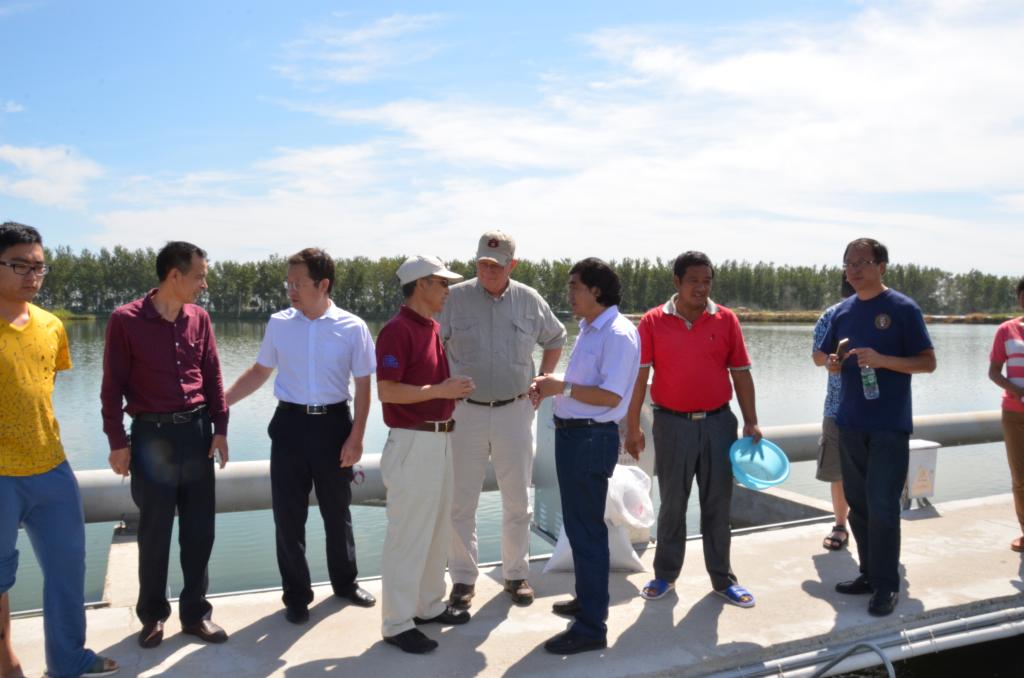 调研现场偶遇美国大豆协会产业拓展专家、奥本大学副教授Jesse A.Chappell先生,双方就共同感兴趣的问题进行交流。下午调研组赴盐城天邦饲料科技有限公司,公司总经理代华、副总经理秦海军介绍了海洋学院水产养殖学专业学生在该公司实习情况,对学院实习学生表现给予充分肯定和高度评价,并希望为公司的发展提供人才保障。双方就学生实习、就业、科研开发等事宜坦诚交换意见,达成共识,随后赴公司物联网+养殖养殖示范基地考察。