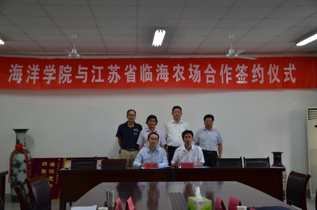 出席此次签约仪式有江苏临海农场贺在锐书记、海洋学院的阎斌伦院长、张俊杰副院长、申欣副院长以及海洋学院各个系的系主任。
