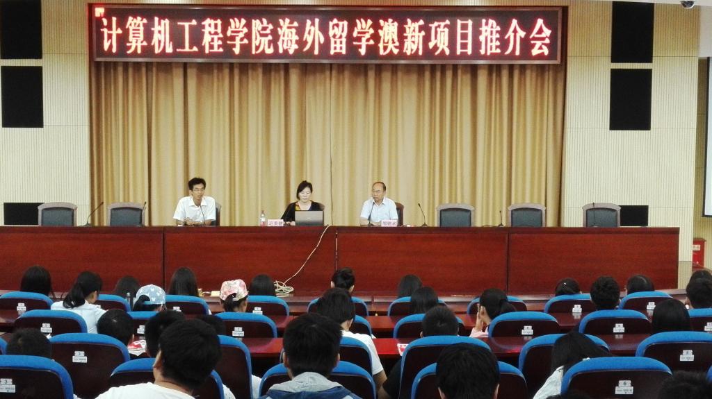 为进一步拓宽学生的国际化视野,鼓励学生出国深造,提高学生的综合素质,9月18日,计算机工程学院与校国际交流与合作处共同举办了海外留学澳新项目推介会,邀请到了新西兰维特利亚理工学院国际部副总经理迟美健女士来为学生介绍海外留学相关项目。推介会在会议中心黄海厅举行,计算机工程学院党委副书记姜兵主持,大二、大三部分学生参加了此次推介活动。
