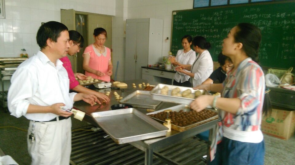 为更有针对性地开展活动,突出重点服务人群,9月26日上午,海洋学院邀请河滨社区下岗职工来学院免费学习烘培技术,提高创业技能。食品与生物工程系几位老师早早就来到实验室准备材料,耐心的讲解月饼的制作工艺、材料的配比、烘培过程的注意事项,并实际操作演示,让他们亲自操作,学做合一、创新实践,现场气氛活跃,河滨社区的居民们踊跃参与。