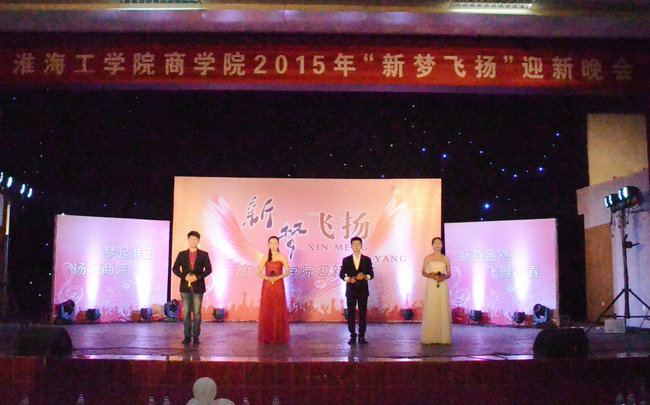 为祝贺2015级新生顺利入学,庆祝学校建校30周年暨办学57周年,商学院于2015年10月11日晚上在通灌校区前程餐厅隆重举行了“新梦飞扬”迎新晚会。商学院党委书记杨天华、院长宣昌勇、党委副书记副院长张振松、副院长张瑞龙、系主任、全体辅导员、新生班班主任及全体新生共同观看了演出。