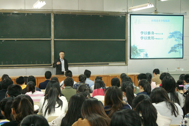 为激励学生树立积极向上的理想目标,立足实践,努力成为不被环境所束缚的应用技术型的人才。10月14日下午,应用技术学院院长樊华教授在该院敦行楼201室为广大学生做了与信仰对话专题讲座,讲座由该院党委副书记、副院长万金店主持,近200名学生聆听了讲座。