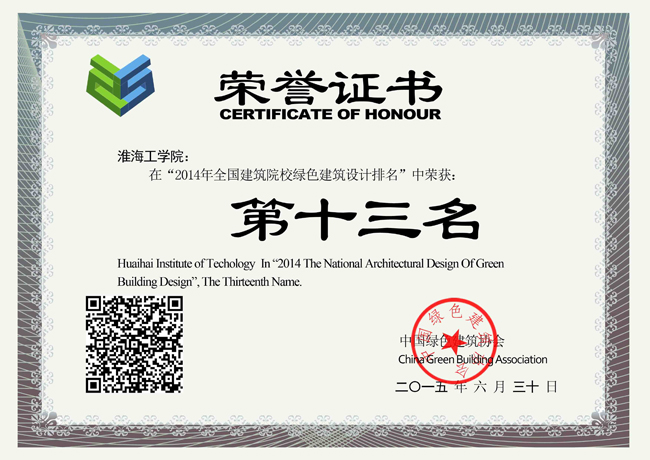 我校在2014年全国建筑院校绿色建筑设计排名