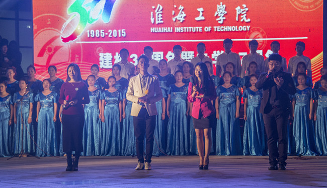 最后,全体在场师生齐唱校歌,在洪亮高昂的歌声中,晚会圆满落下帷幕。在校庆前夕的夜晚,全校师生共同起舞,纵情歌唱,用热情和欢笑为青春淮工献上了最为真诚的祝福——三十岁生日快乐!我爱你,淮工!