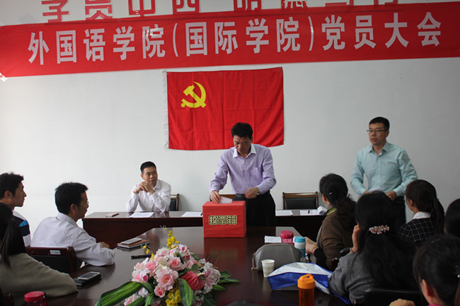 2015年10月下旬,外国语学院(国际学院)党委举行换届选举党员大会,学院全体正式党员参加会议,校党委组织部副部长张学武同志应邀出席,部分民主党派代表和预备党员列席会议。