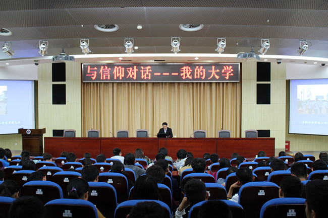 为了让2015级新生更好的了解大学生活,明确自己的目标和方向,10月27日晚,测绘工程学院在学术报告中心黄海厅举办了“与信仰对话——我的大学”讲座。本次讲座由测绘工程学院优秀校友、现赣榆区商务局副局长、党委委员韩猛主讲,测绘工程学院党委副书记、副院长王晶主持。