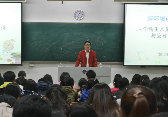 10月27日晚7点整,商学院2015级新生入学教育系列讲座之“新环境,心快乐”心理健康教育专题讲座,在通灌校区TZ402教室成功举办。此次讲座邀请的是商学院团委书记刘勇老师,讲座旨在分析大学新生常见的心理困扰并教导学生应对策略。
