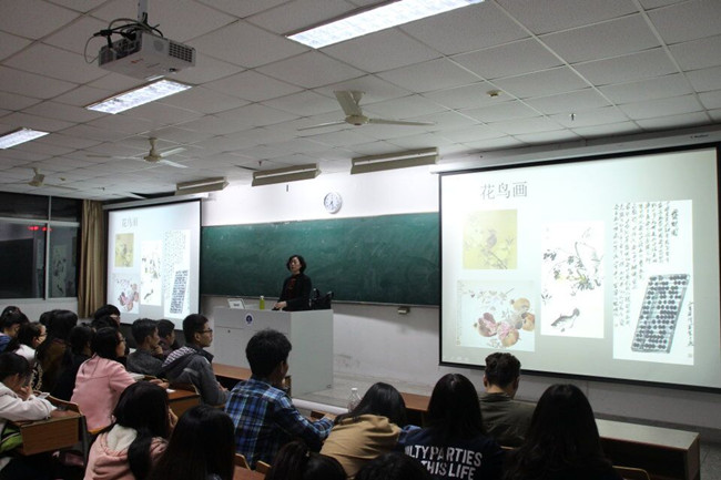 11月3日晚,江苏省青联委员、宿迁学院艺术与传媒学院卢静教授应邀为艺术学院师生作了《工笔画花鸟画欣赏》专题讲座。