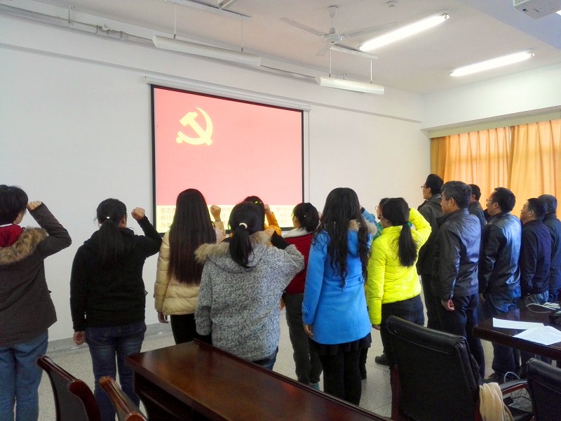 答辩会前,举行了重温入党誓词仪式,在鲜红的党旗下,党总支委员温德育带领全体与会党员庄严宣誓。