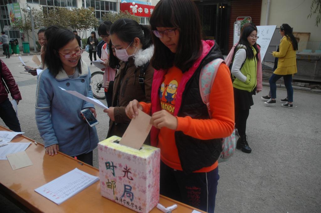 经过一个多小时的宣传,时光信封已全部发完,但前来报名的同学仍络绎不绝。“留一份青春,留一个纪念,留一份邮递,写给未来的信……”谈到这次活动,主要负责人说道,“办这个活动的主要目的,是想让同学们在未来某一天收到'时光邮局'的来信或物品时,体验在时光的悄悄流逝中我们自身的变化,从而能有一定的感悟和收获。”