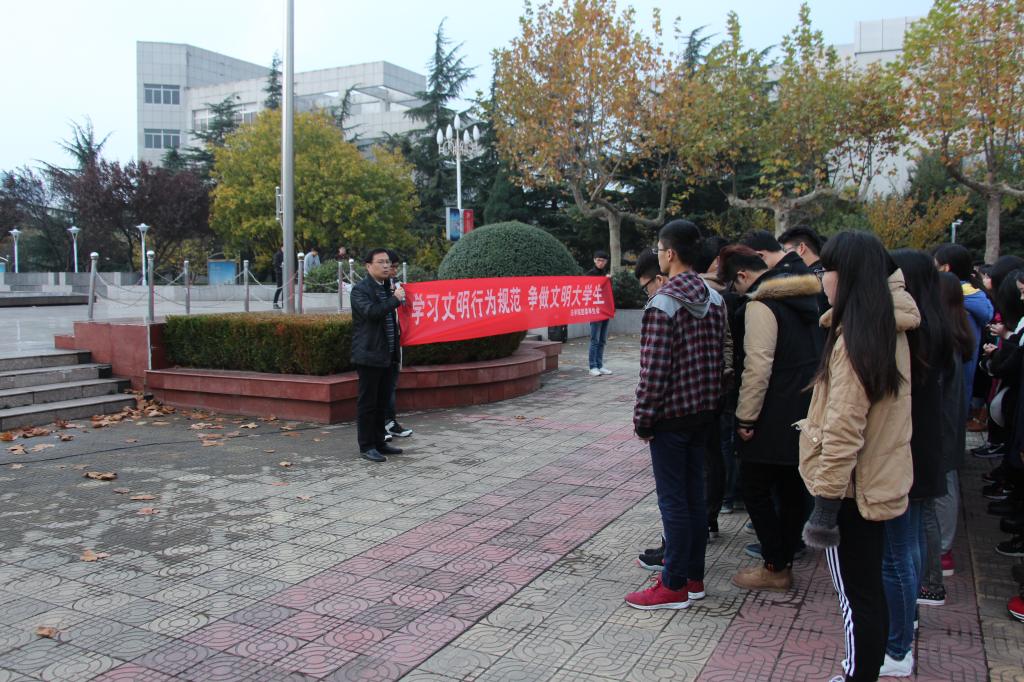 11月17日早晨,法学院在主楼前广场举行大学生文明行为教育主题升旗仪式。法学院12、13、14级全体学生及班主任、辅导员老师参加了升旗仪式。