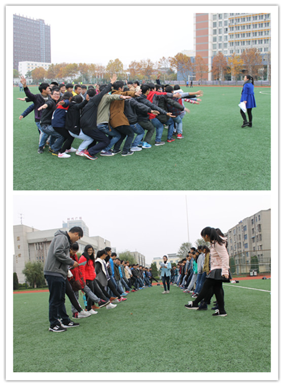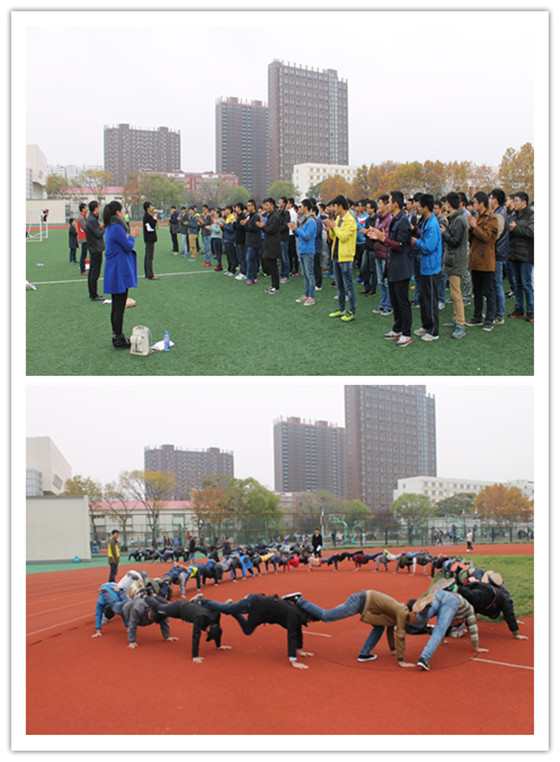 11月21日下午3时,机械工程学院在通灌校区操场上对535名2015级全体新生开展了素质拓展训练。本次活动由院党委副书记赵求勇担任总培训师,辅导员郑晓涛、王刚、王丹、阎文婕、王爽分别担任各方阵的分培训师。
