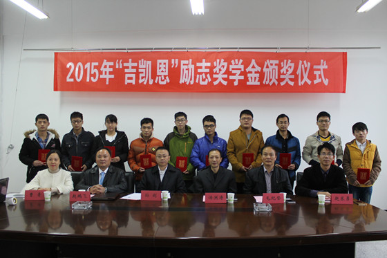 赵求勇书记宣读了2015年“吉凯恩”励志奖学金表彰决定,校企双方代表为机电121班王帅帅、机械121班巩雪、机械122班马服辉、装备121班李想、装备122班夏波、G机电131班周小平、船舶131班金强、机电131班徐超、机电132班李红帅、机械133班蒋德德十名同学颁发了获奖证书。仪式最后,获奖学生代表巩雪致感谢辞,对吉凯恩公司给予的帮助与关怀表达了衷心的感谢,承诺将通过自己的努力来回报吉凯恩企业、学校和社会的培养与关爱。