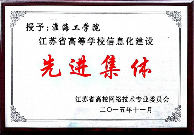 2015年11月20日,“江苏省高校网络技术专业委员会”第十一届年会在南京师范大学召开。会议总结了全省高校在信息化建设工作中取得的成绩并对今后的建设工作提出了新一轮的规划,表彰了一批在过去一年中在信息化建设工作取得优异成绩的单位。我校荣获“江苏省高等学校信息化建设先进集体”称号。