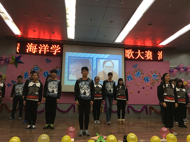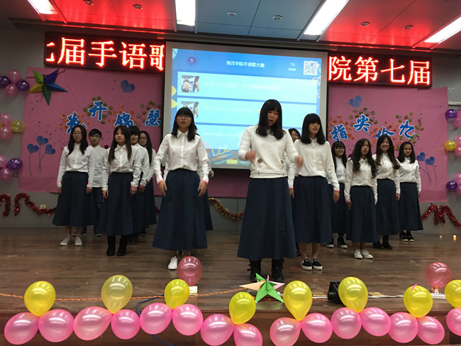 12月10日晚6点30分,海洋学院第七届心灵手语歌大赛在大学生活动中心顺利举办。海洋学院党委书记李树安、党委副书记马志同、校心理中心李耀宗老师及全体辅导员受邀参加了此次比赛,并作为专业评审,同时全体大一新生也前来观看了此次比赛。