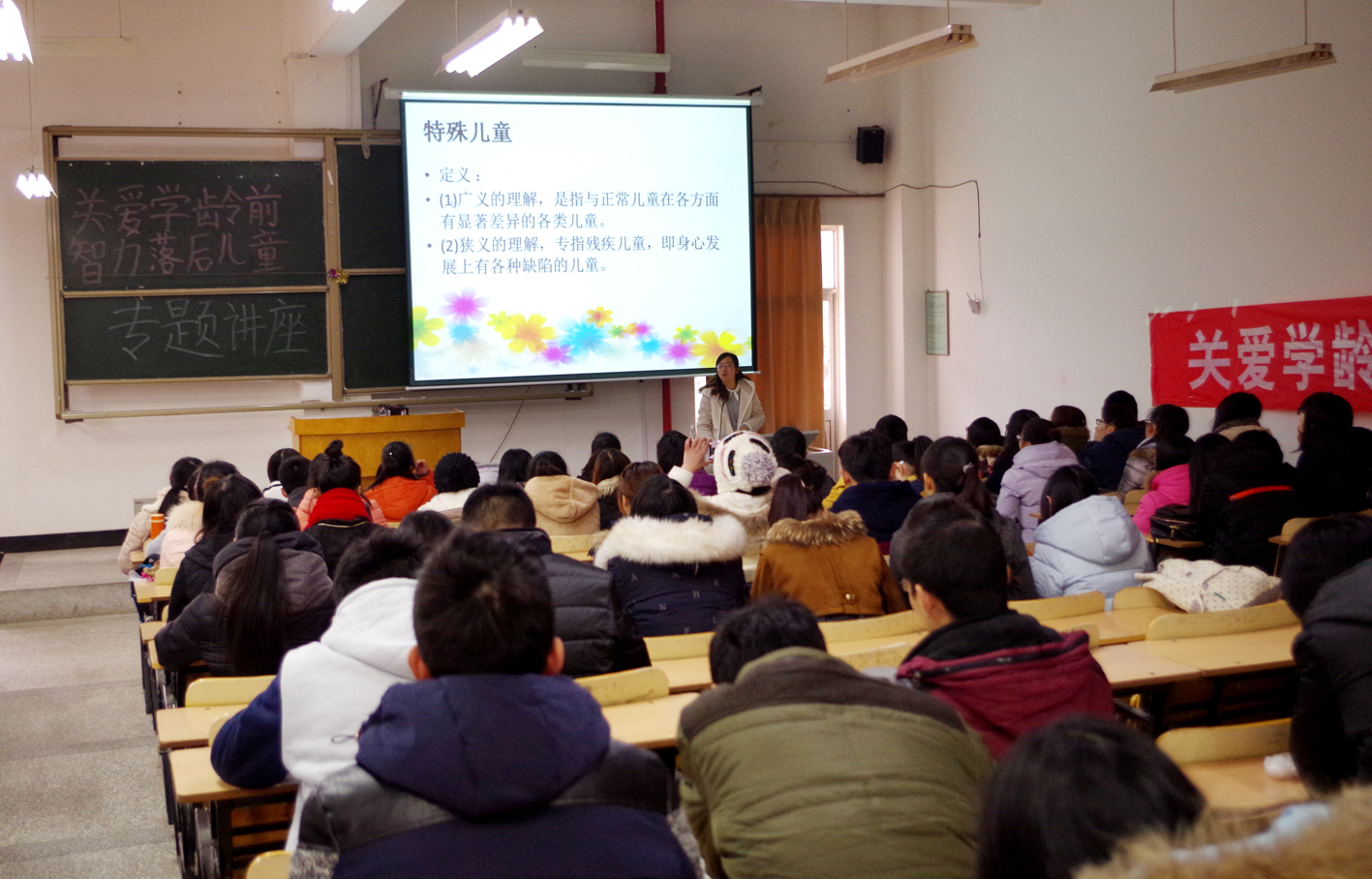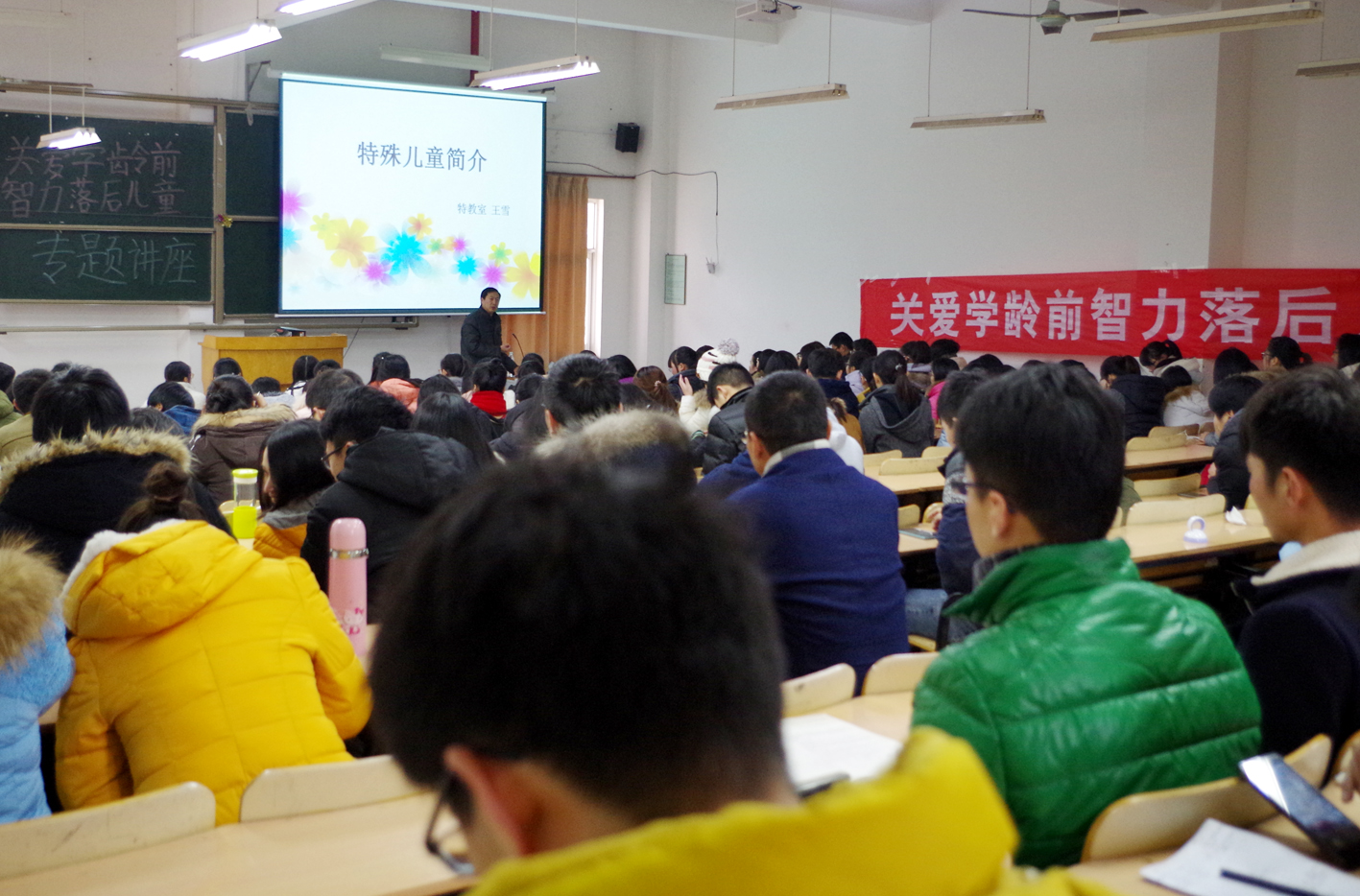 为了提高志愿者的专业化和科学化,应用技术学院于日前开展了主题为“关爱学龄前智力落后儿童”的志愿者专题讲座,讲座旨在帮助特殊儿童,尤其是智力障碍儿童健康成长。活动由该院党委副书记、副院长万金店主持,邀请了连云港市妇幼保健院儿童康复中心王雪老师,福佑儿童发展中心陶乙霆老师为志愿者们进行专题培训。