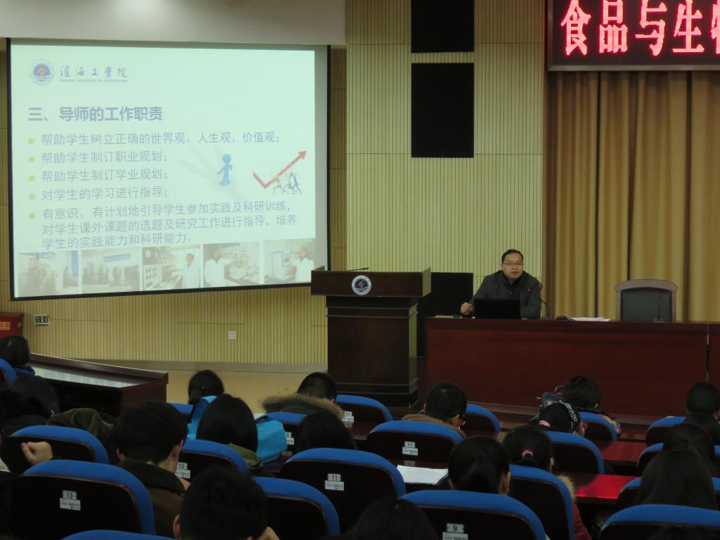 会上,盘主任首先从有利于充分调动学生学习的积极性与主动性,培养知识结构合理、个性与特长充分发展的高素质人才;有利于充分发挥教师在学生培养过程中的指导作用;有利于充分调动教学科研资源服务于人才培养三个方面阐述了实行导师制的意义,然后介绍了该系导师制工作流程和学业导师的工作职责,最后介绍了全系22位学业导师的毕业院校、主讲课程、专业特长和研究方向等基本情况。发放了《食品与生物工程系学业导师工作指引》和《学业导师双向选择报名表》并对学业导师工作作了具体的布置。本次会议的召开,标志着食品与生物工程系全面推进学业导师制,进一步完善了该系的学生培养机制。