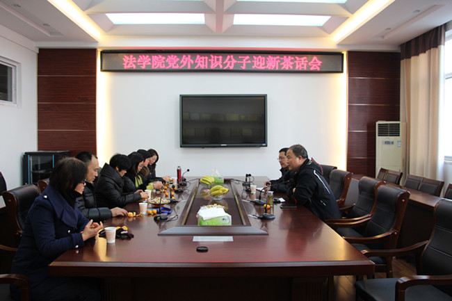 12月31日上午,法学院在文渊楼216会议室举行党外知识分子迎新茶话会,法学院党委书记朱国良、副书记黄金虎等党委班子成员与民主党派、无党派教师代表共同参加。