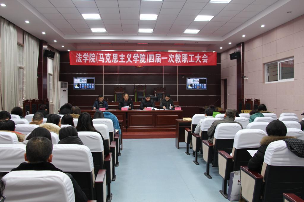 1月6日下午,法学院(马克思主义学院)在模拟法庭召开四届一次教职工大会,法学院全体教职员工参加了会议。会议由副书记、副院长黄金虎主持。