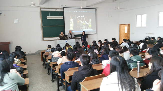 维特利亚理工学院艺术学院院长Kaye Jujnovich女士做了简要的开场白。接着迟美健女士做了详尽的留学介绍,内容涵盖新西兰的自然环境、新西兰的文化、维特利亚理工学院艺术学院的基本情况、申请留学程序和材料准备。迟女士的讲座获得同学们的热烈掌声。艺术学院和维特利亚理工学院有着多年的合作关系,每年都有学生顺利取得该校留学资格。